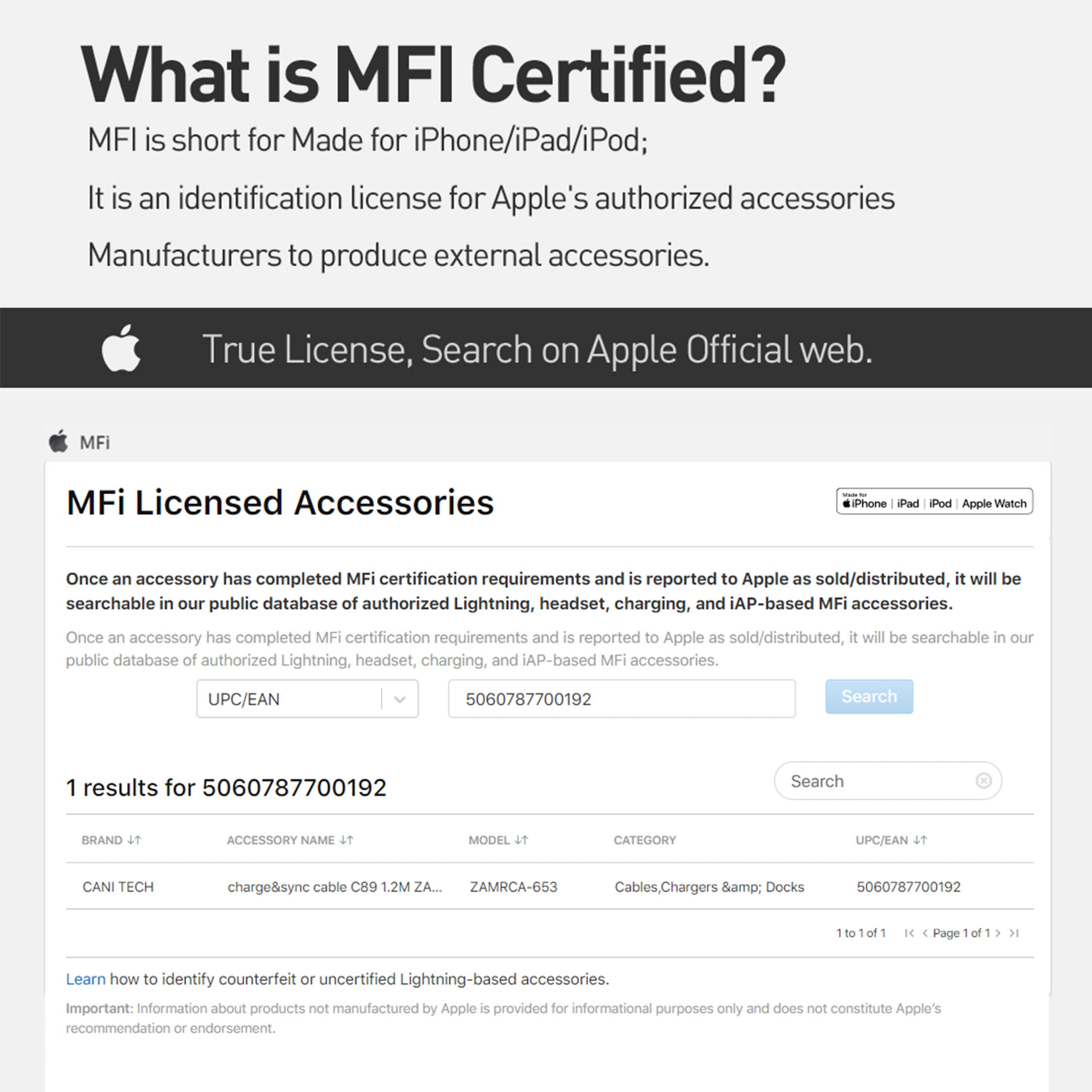 - ✔️ Apple C48 MFi Certified – With Newest Apple’s original C48 connector and smart chip, CANI TECH iPhone charger lightning cable ensures fast charging and sync speed. Perfectly. MFi-certified cables provide a safe and stable charging solution for your devices.