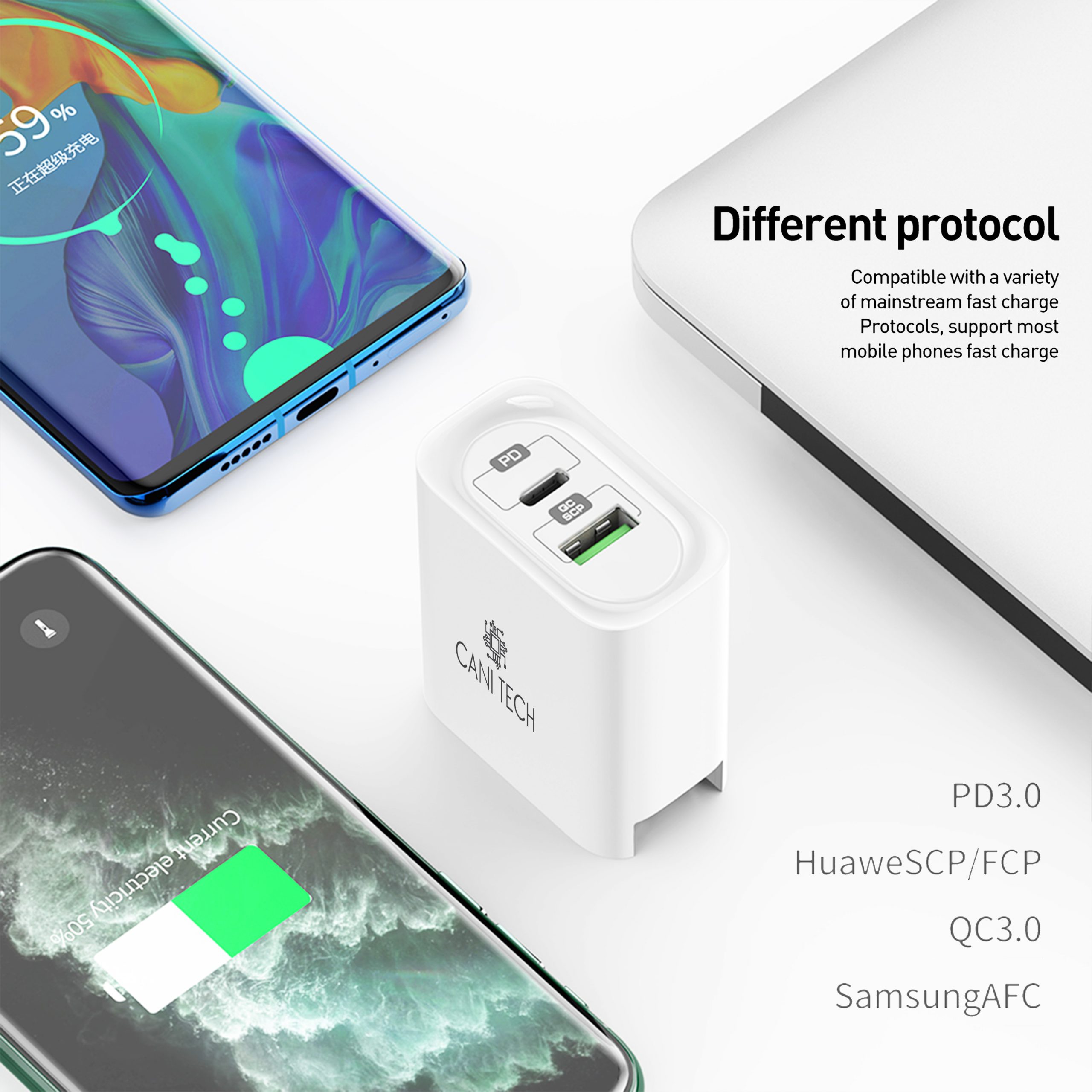 - ✔️🌏 DIFFERENT PROTOCOLS: Compatible with a variety of mainstream fast charge protocols, Support most mobile phones fast charge. (PD 3.0, Huawei SCP/FCP, QC 3.0, Samsung AFC)